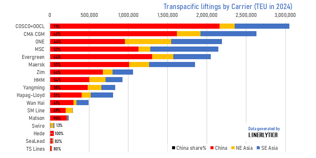 数据来源: Linerlytica美国的关税让步不足以恢复跨太平洋运输量
